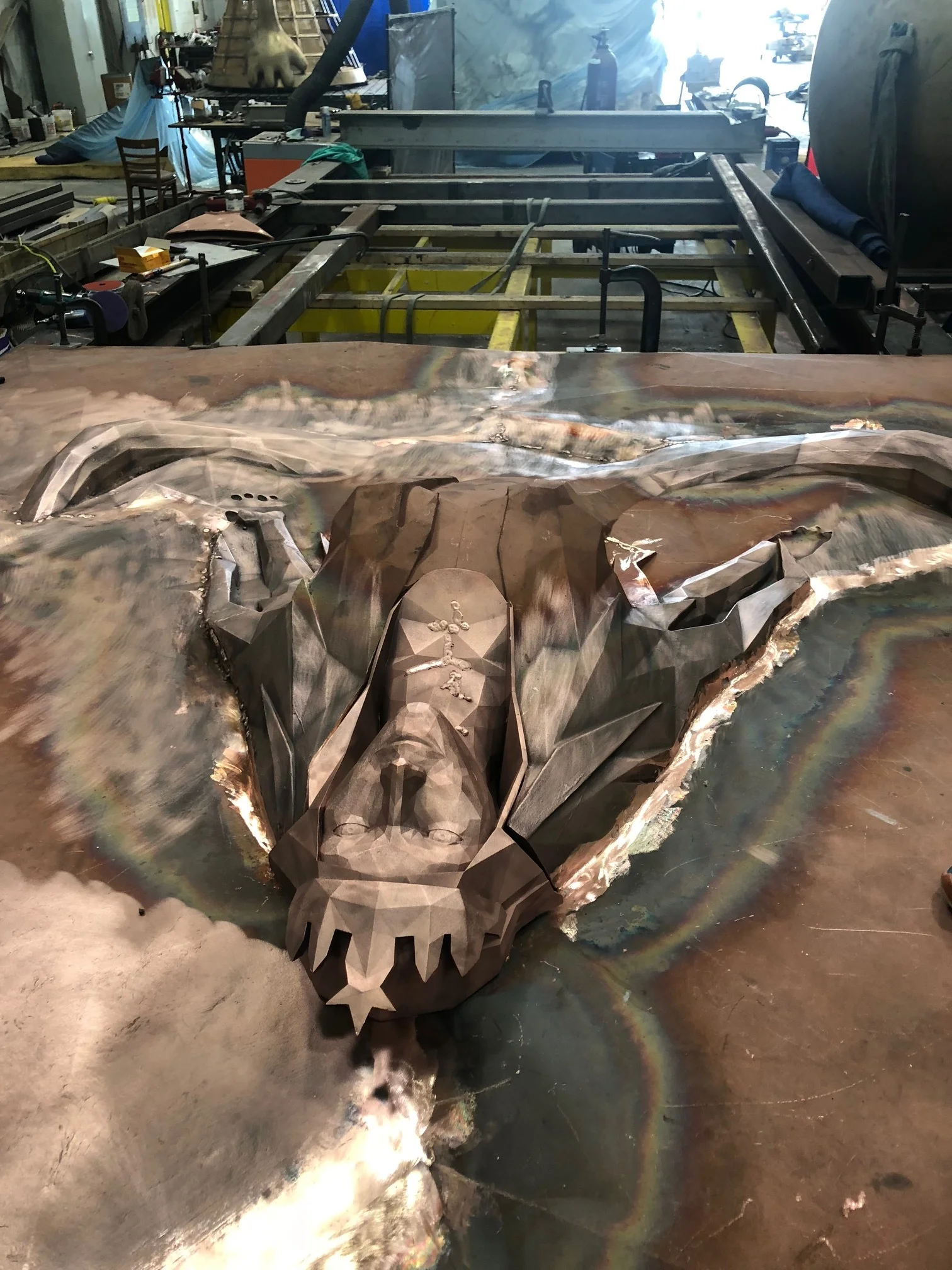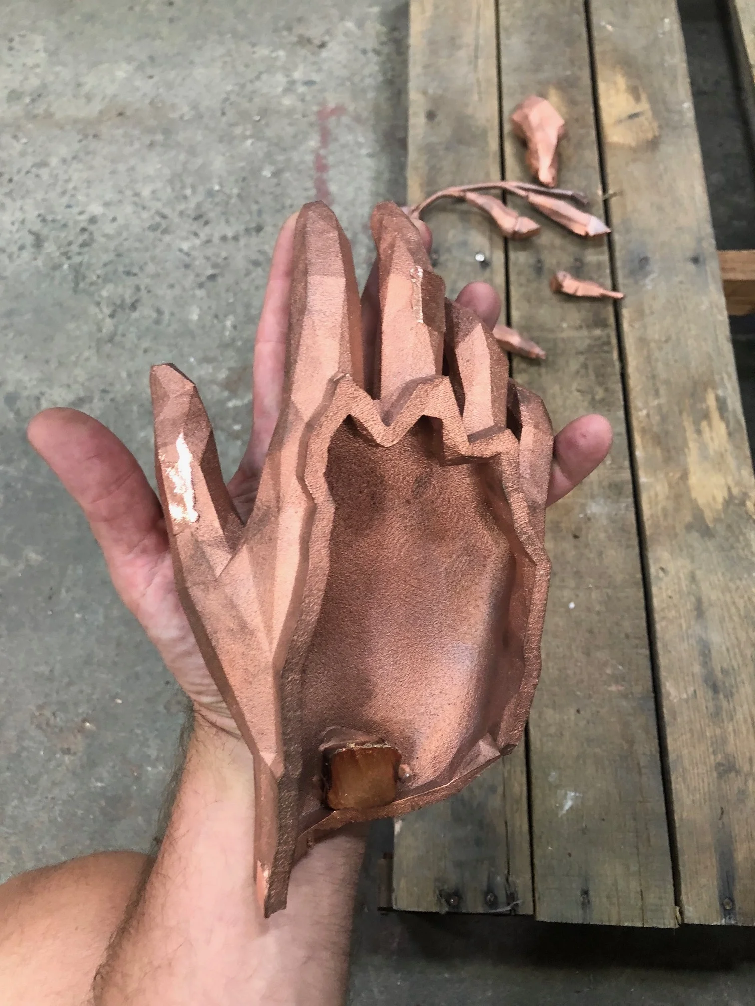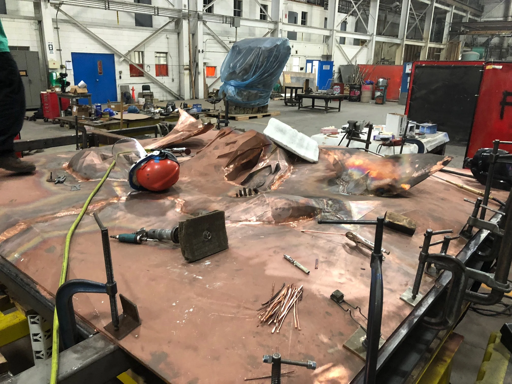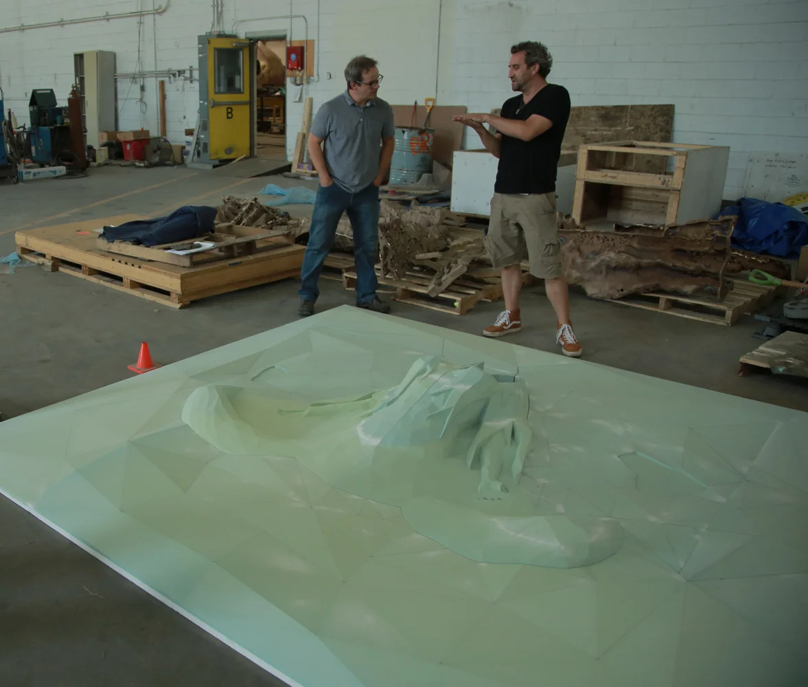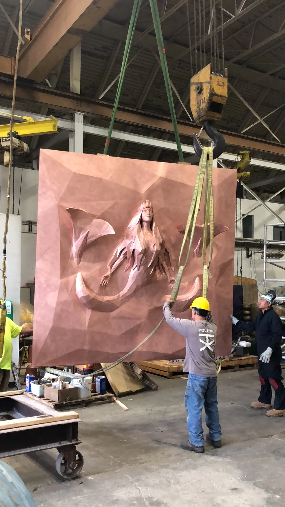 Over the following year, Steiner, along with the Starbucks team, developed the design of a copper wall relief sculpture as a centerpiece for the space. The final result was a 10ft x 10ft, 2,500lb copper/bronze sculpture built into the Roastery.