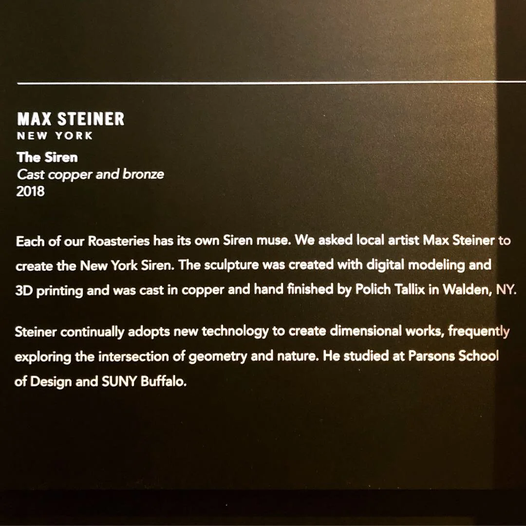 Every Starbucks Reserve Roastery in the world (there are currently 5 of them) has a different artist create a version of their iconic twin-tailed Siren. In 2017 MSD was asked to create the Siren for this upcoming New York location.